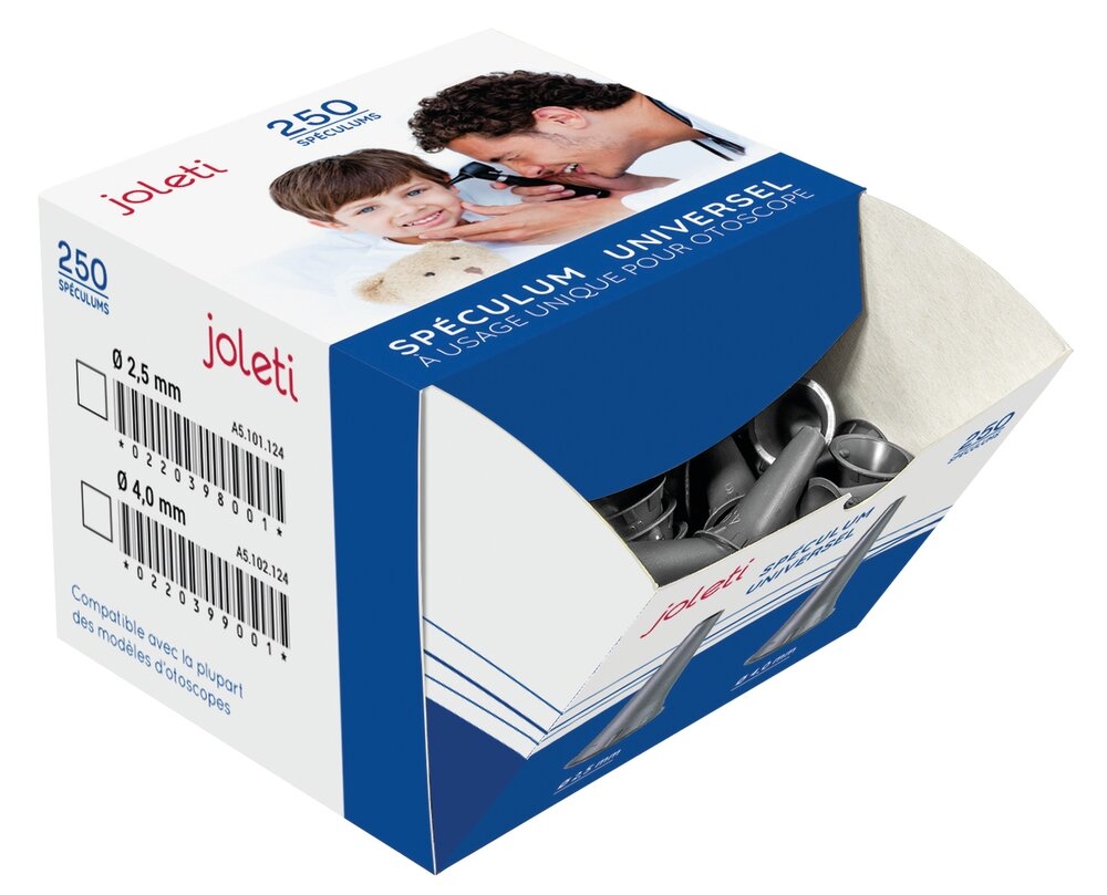 Embout à usage unique, compatible avec la plupart des otoscopes. En polystyrène recyclé, sans odeur et agréable pour la peau.